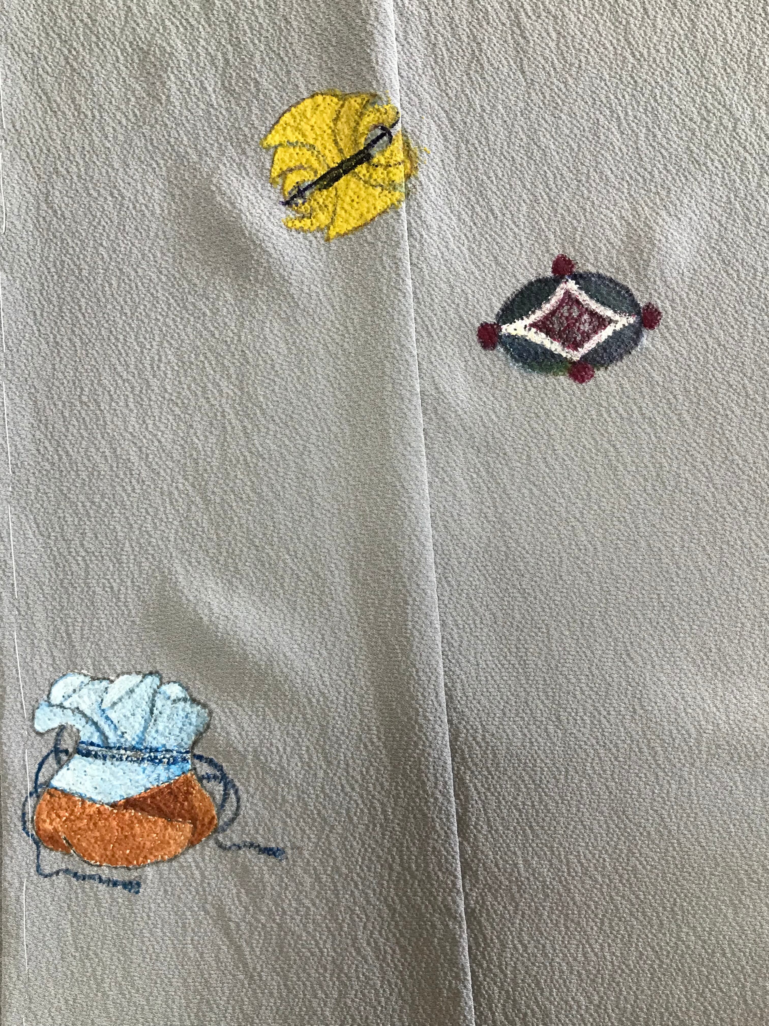 【仕立て込み・一点物】手描き訪問着〈付立染〉正絹/縁起柄×灰藤色|作家物・仕立て対応